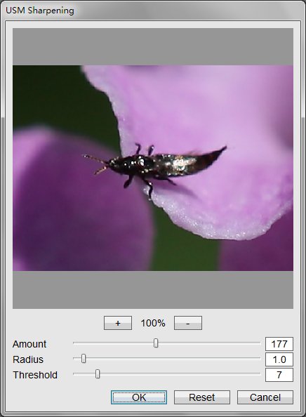 The Unsharp Mask sharpens an image by increasing contrast along the edges in an image. The Unsharp Mask does not detect edges in an image. Instead, it locates pixels that differ in value from surrounding pixels by the threshold you specify. It then increases the contrast of neighboring pixels by the amount you specify. So, for neighboring pixels the lighter pixels get lighter and the darker pixels get darker.
