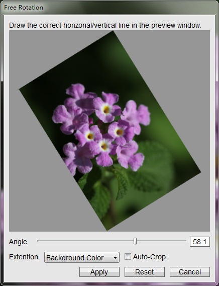 | Free Rotation | Rotate the photo by any specified degrees. |