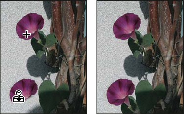 To use the Clone Stamp tool, you set a sampling point on the area you want to copy (clone) the pixels from and paint over another area. Then drag over the area of the image you want to copy the sampled pixels to. To paint with the most current sampling point whenever you stop and resume painting, select the Aligned option. Deselect the Aligned option to paint starting from the initial sampling point no matter how many times you stop and resume painting.