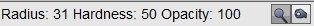 2. Set pen options for the radius, hardness and opacity in the options bar.