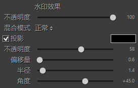 投影 - 勾选“投影”选项来给水印增加投影效果,并使用其下控件来调节投影参数: