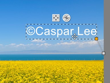当一个水印被选中时,你可以通过点击并拖动鼠标来直接移动、缩放和旋转它。并且你可以通过[↑][↓][←][→]和[+][-]按键来微调水印的位置和尺寸。