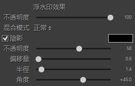 陰影 - 勾選“陰影”選項來給浮水印增加陰影效果,並使用其下控件來調節陰影參數: