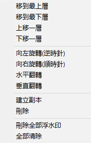 當一個浮水印被選中時,您可以通過點擊並拖動滑鼠來直接移動、縮放和旋轉它。並且您可以通過[↑][↓][←][→]和[+][-]按鍵來微調浮水印的位置和尺寸。